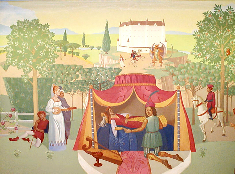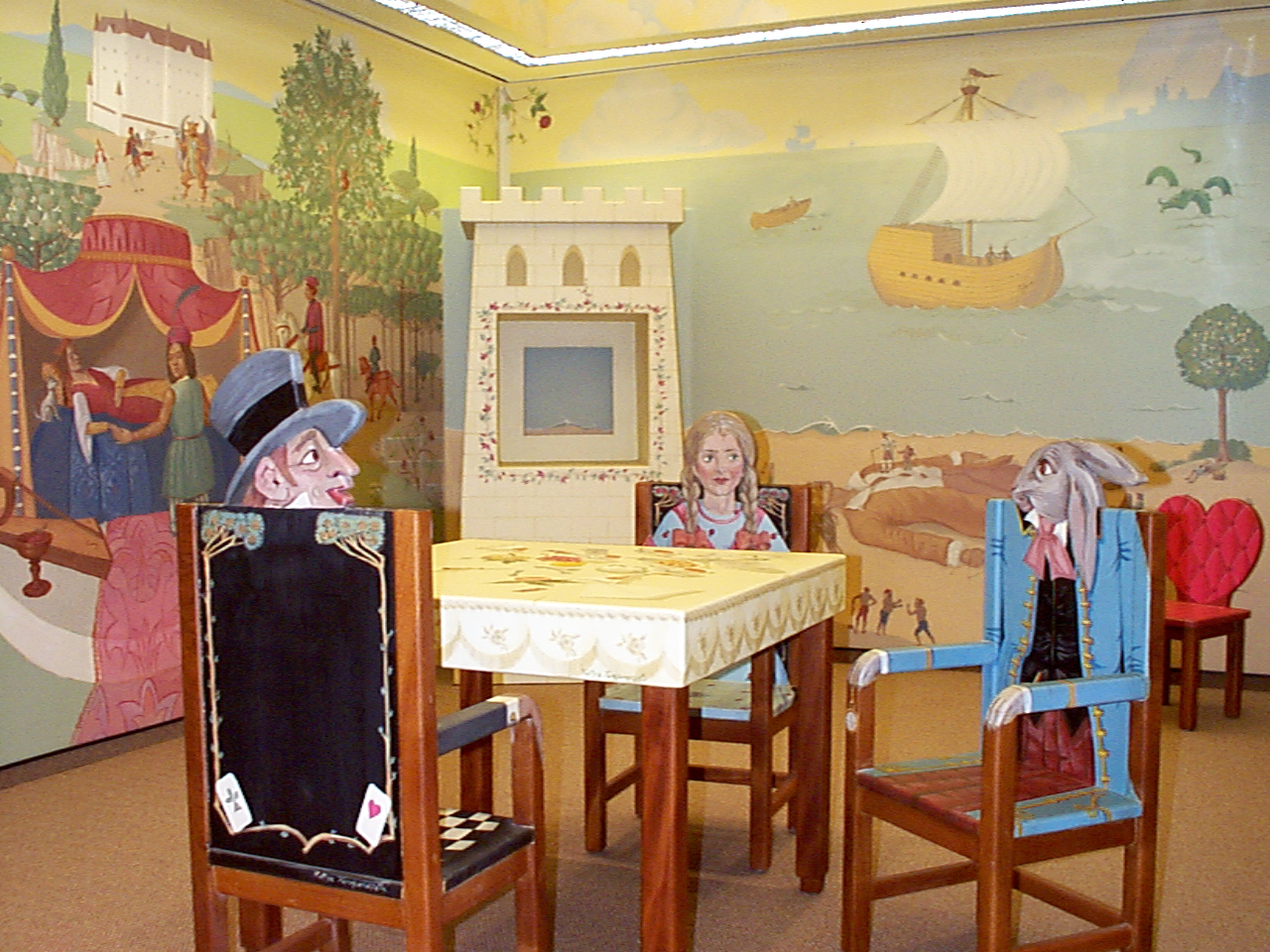 I was commissioned to paint a custom mural in the children’s emergency waiting room at Los Angeles’ Cedars-Sinai Medical Center. I depicted well-known fairy tale motifs in every corner of the space, and hand painted custom furniture to match.